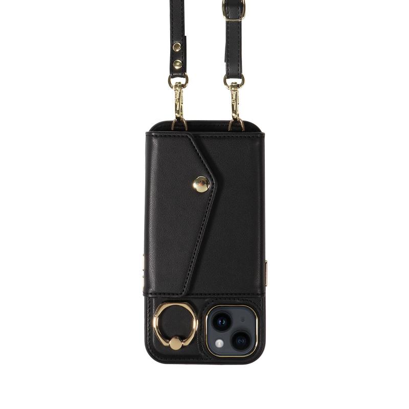 For iPhone 11 Diagonal Crossbody Ring Organ Wallet Leather Back Phone Case(Black)