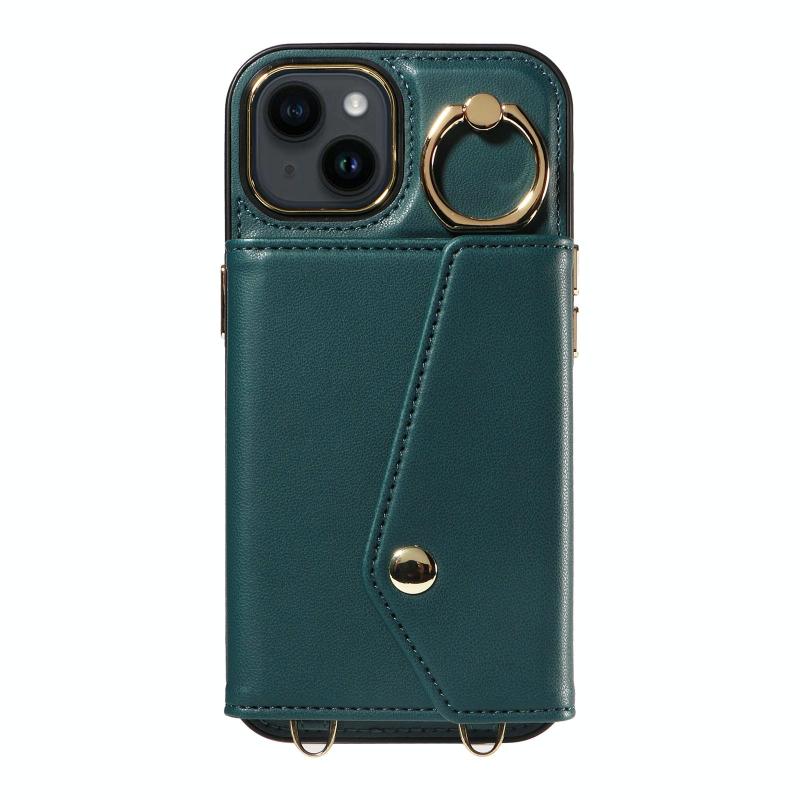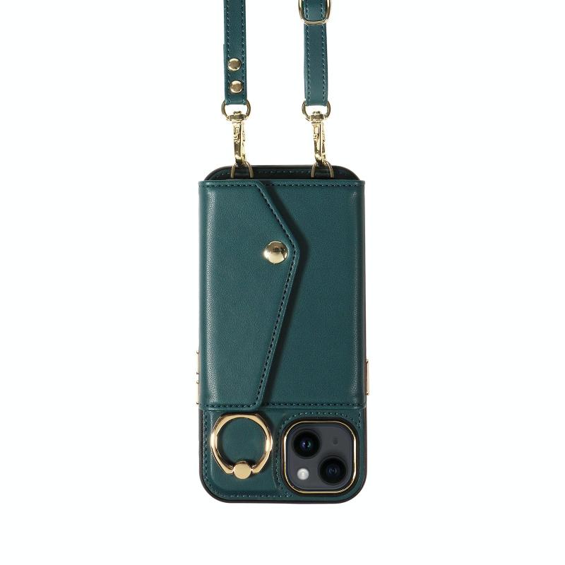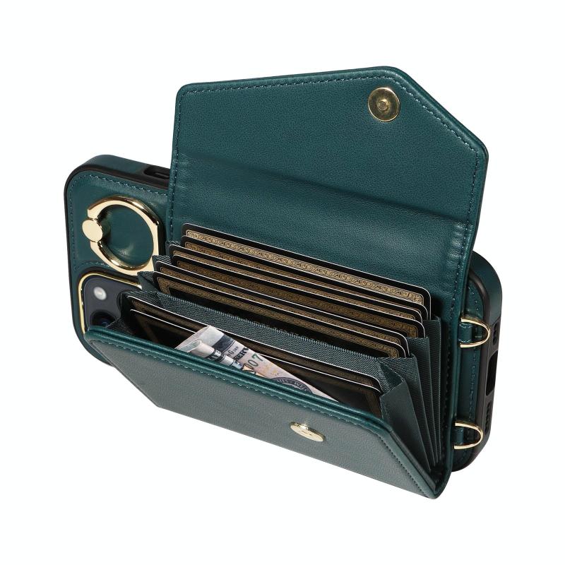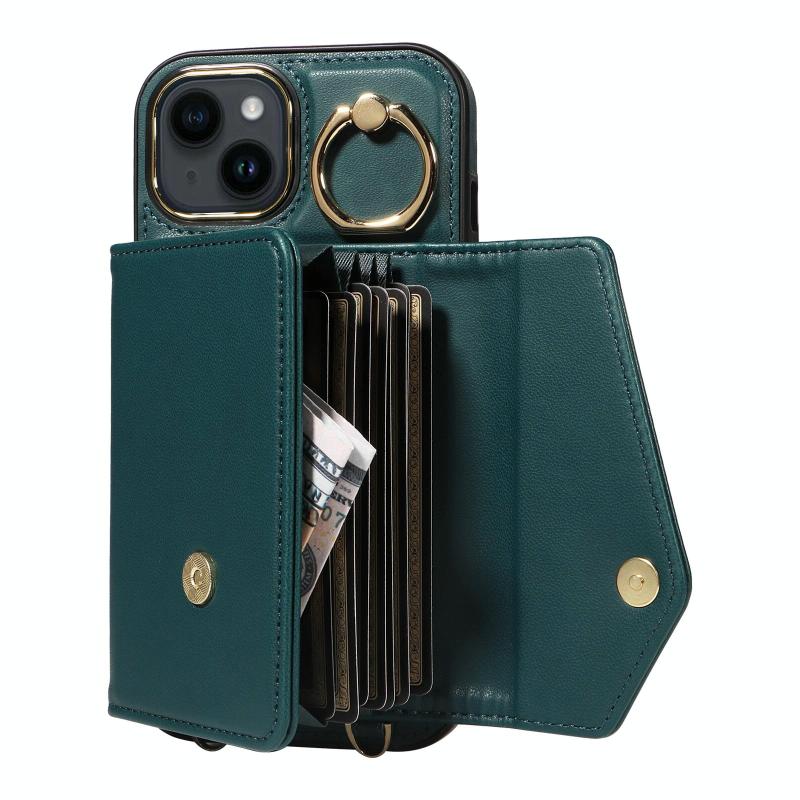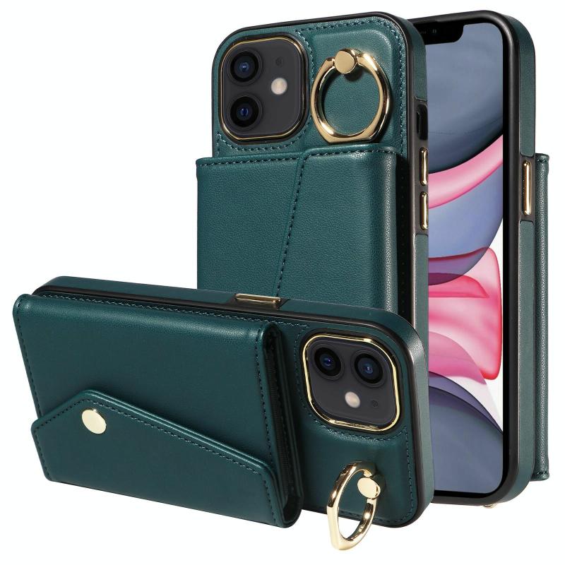 For iPhone 11 Diagonal Crossbody Ring Organ Wallet Leather Back Phone Case(Dark Green)