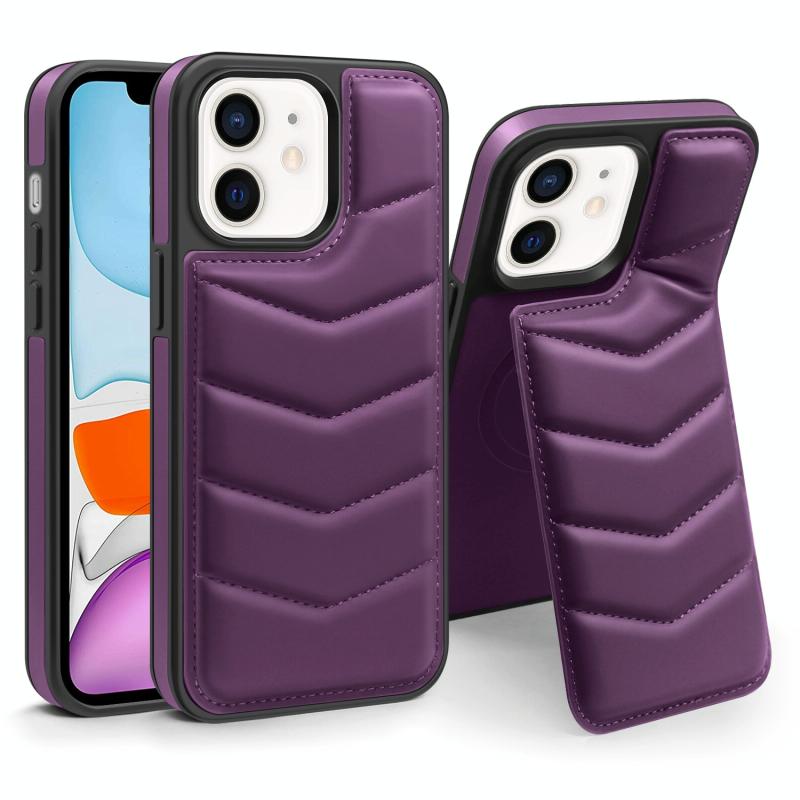 For iPhone 11 Down Jacket Card Bag Holder MagSafe Phone Case(Purple)