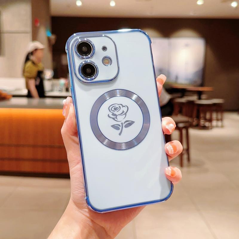 For iPhone 11 Electroplate Side Roses Flower MagSafe Phone Case(Blue)