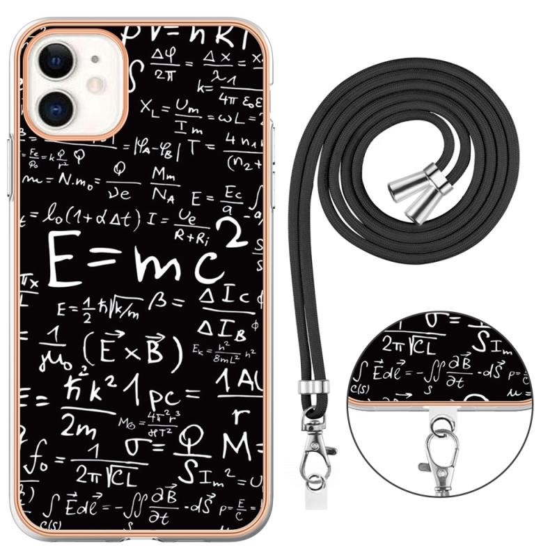 For iPhone 11 Electroplating Dual-side IMD Phone Case with Lanyard(Equation)