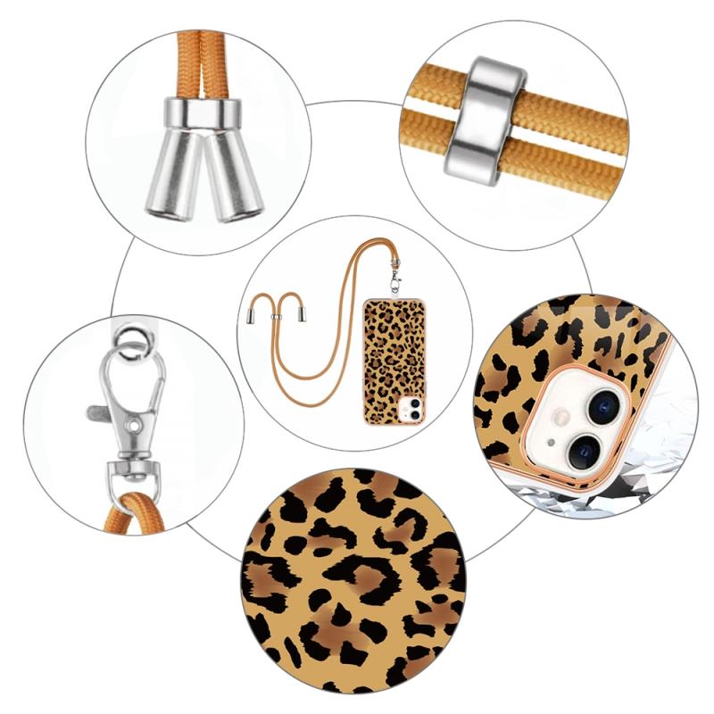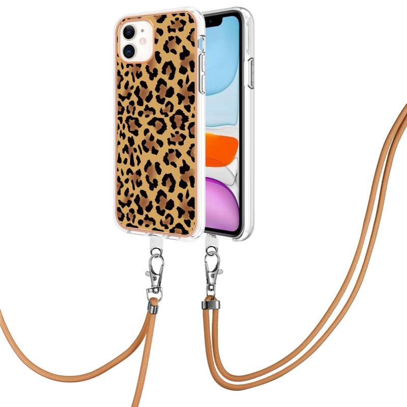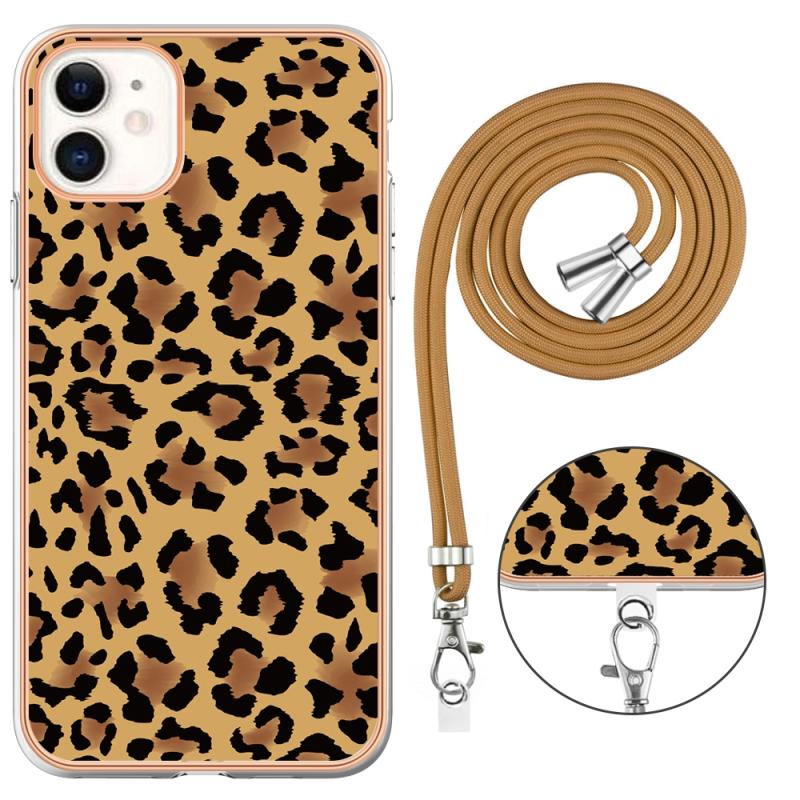 For iPhone 11 Electroplating Dual-side IMD Phone Case with Lanyard(Leopard Print)