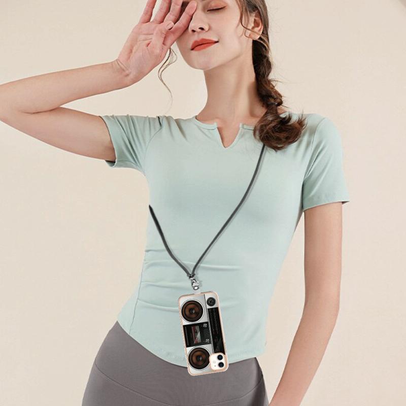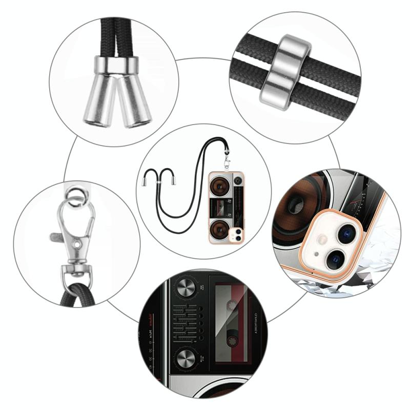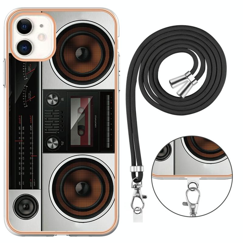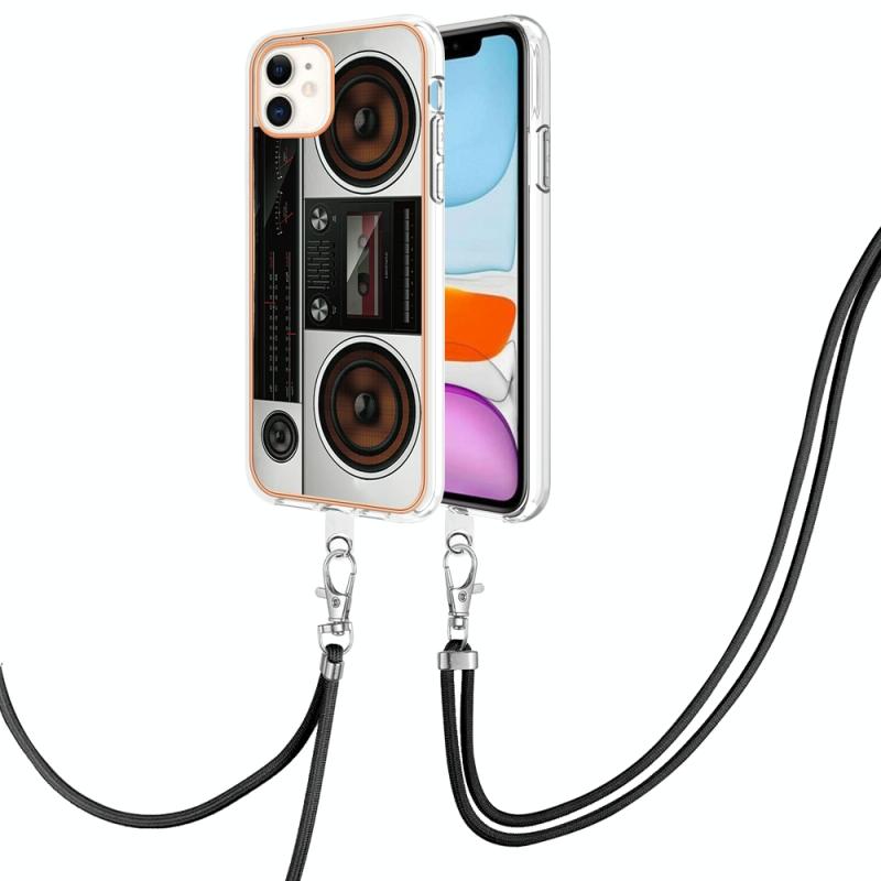 For iPhone 11 Electroplating Dual-side IMD Phone Case with Lanyard(Retro Radio)