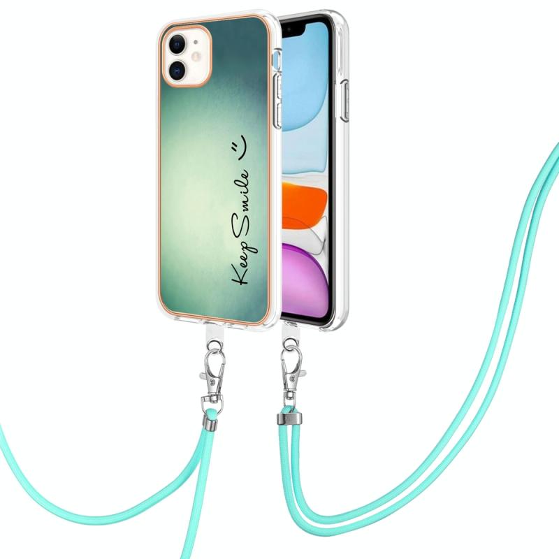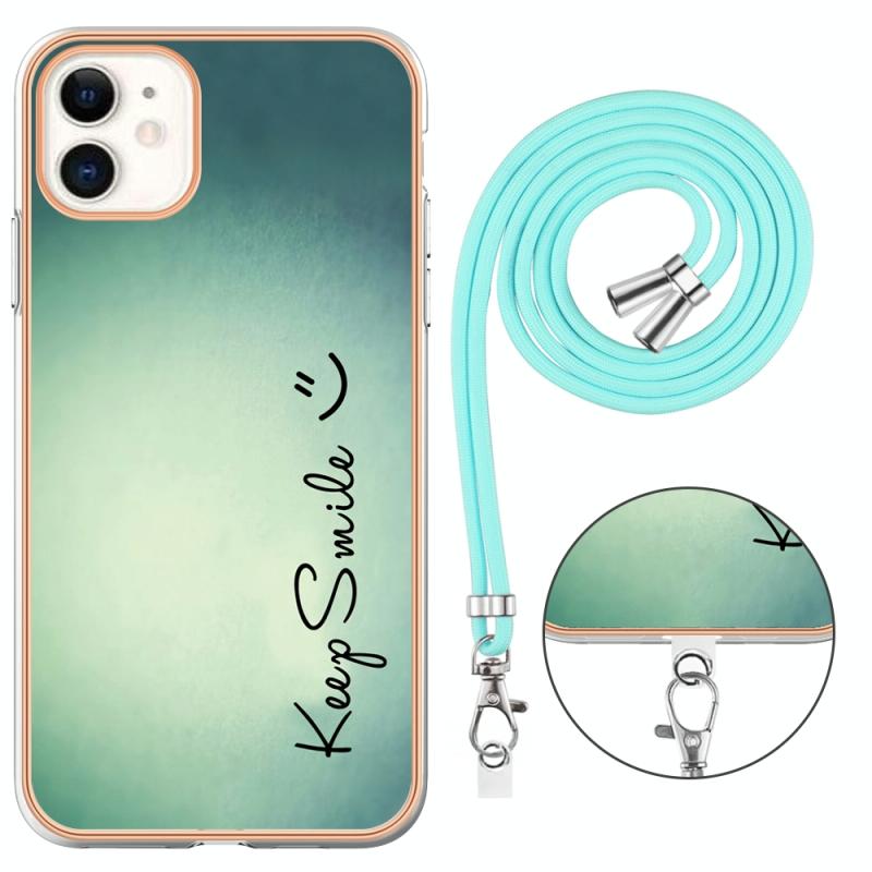 For iPhone 11 Electroplating Dual-side IMD Phone Case with Lanyard(Smile)