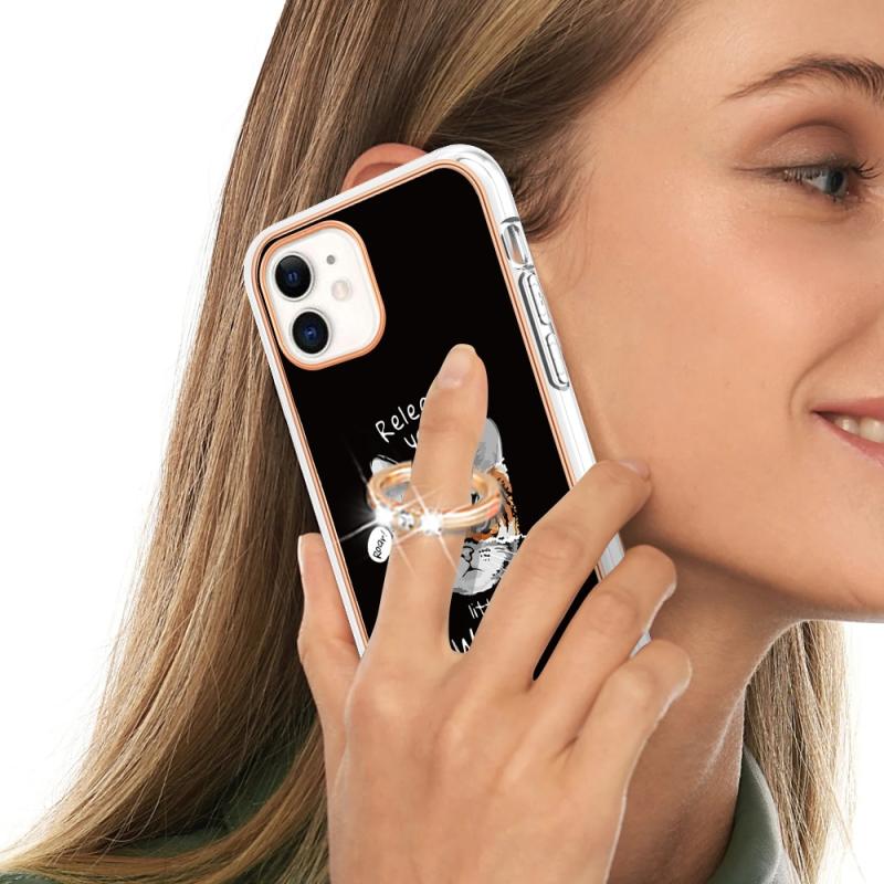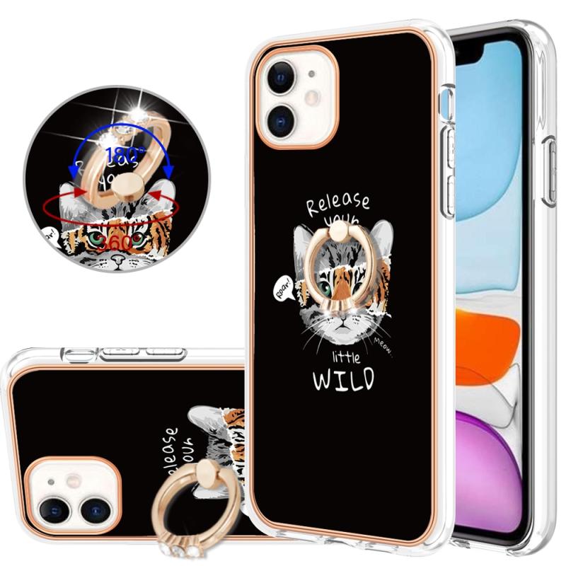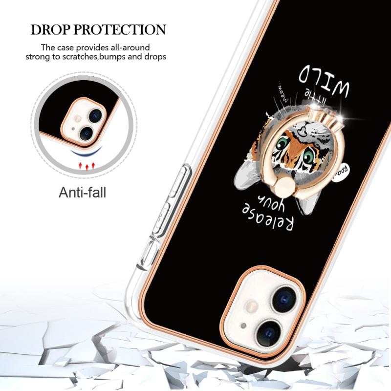 For iPhone 11 Electroplating Dual-side IMD Phone Case with Ring Holder(Natural Growth)