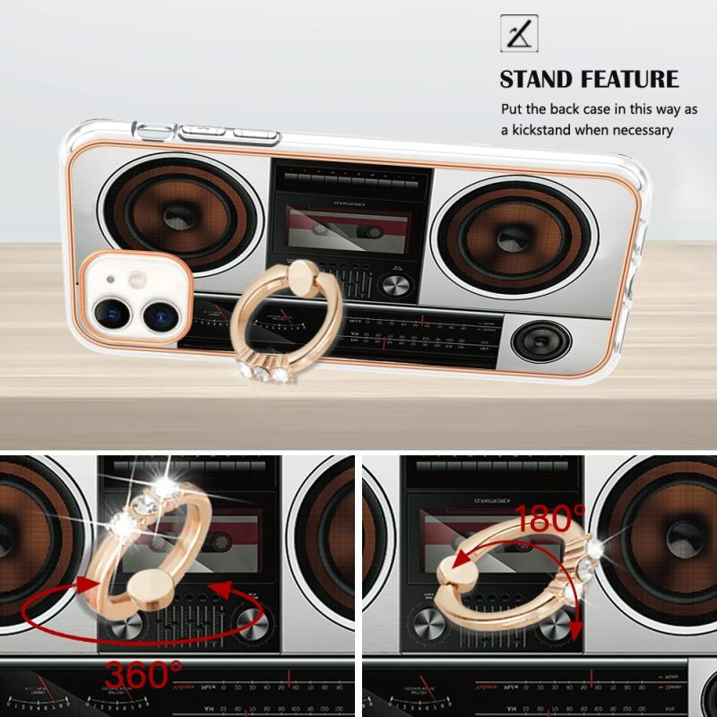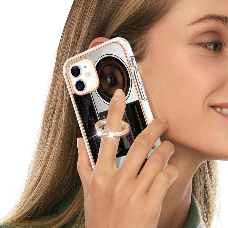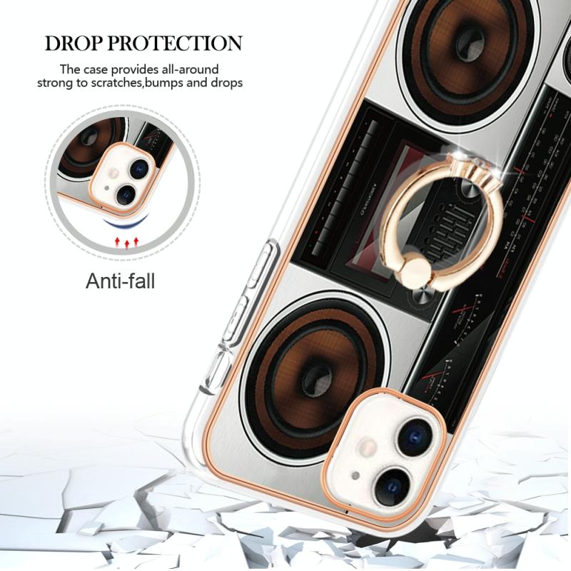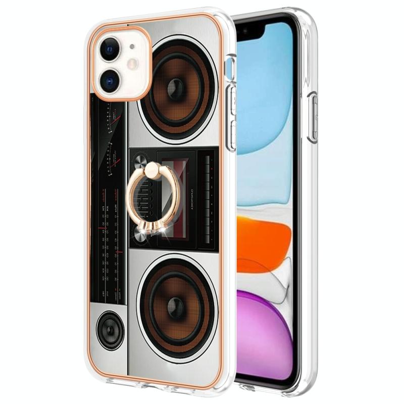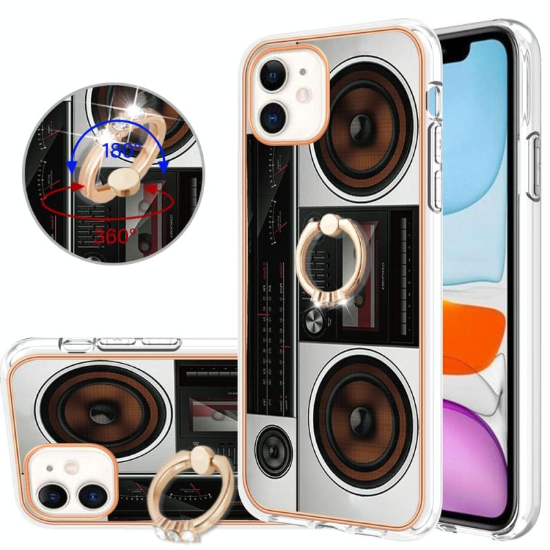 For iPhone 11 Electroplating Dual-side IMD Phone Case with Ring Holder(Retro Radio)