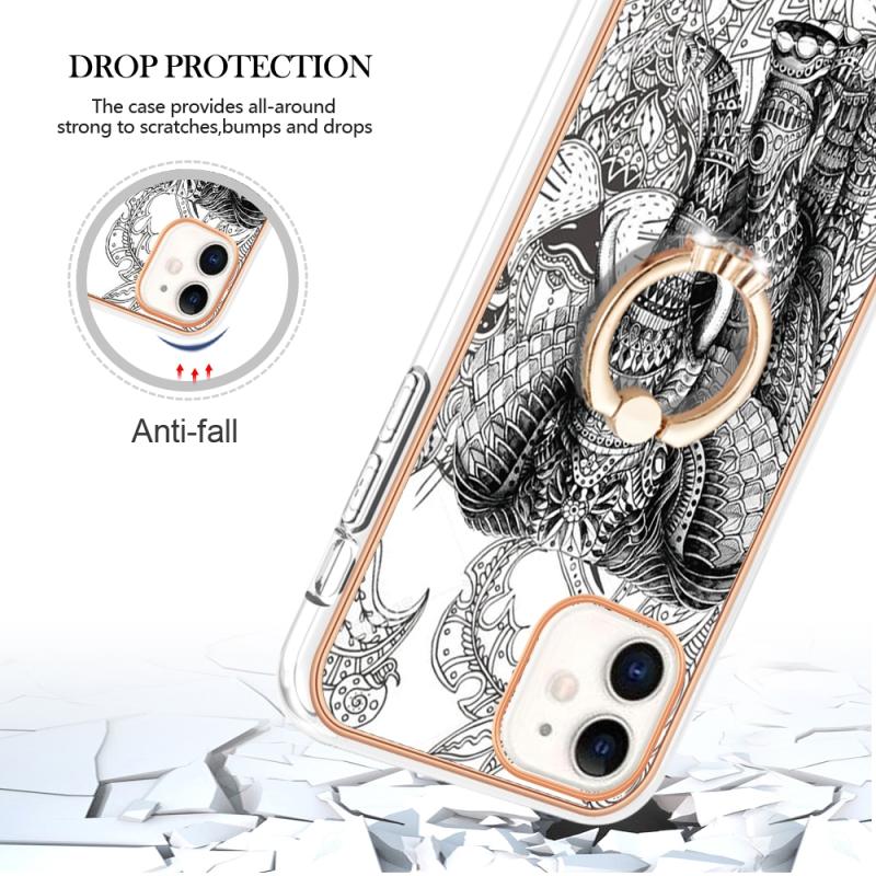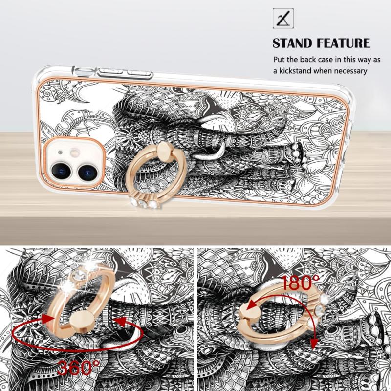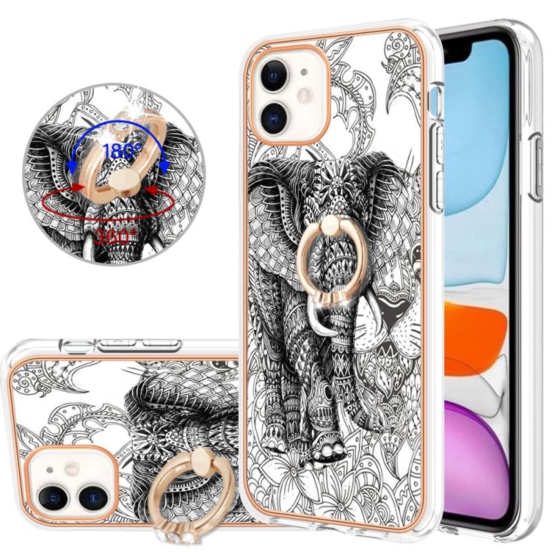 For iPhone 11 Electroplating Dual-side IMD Phone Case with Ring Holder(Totem Elephant)