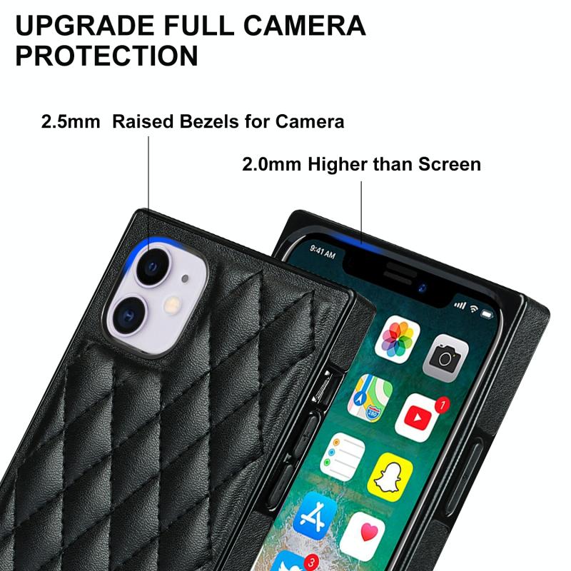 For iPhone 11 Elegant Rhombic Pattern Microfiber Leather +TPU Shockproof Case with Crossbody Strap Chain (Black)