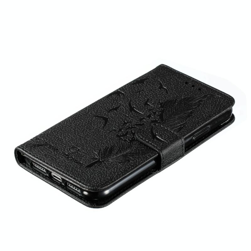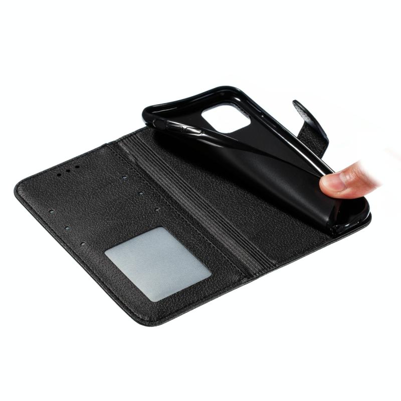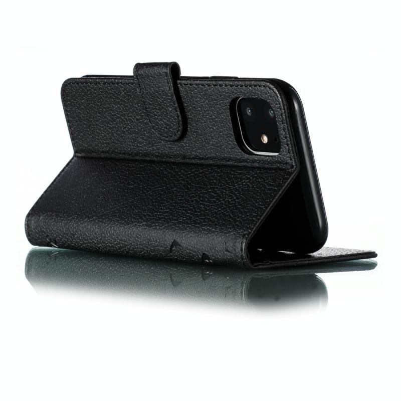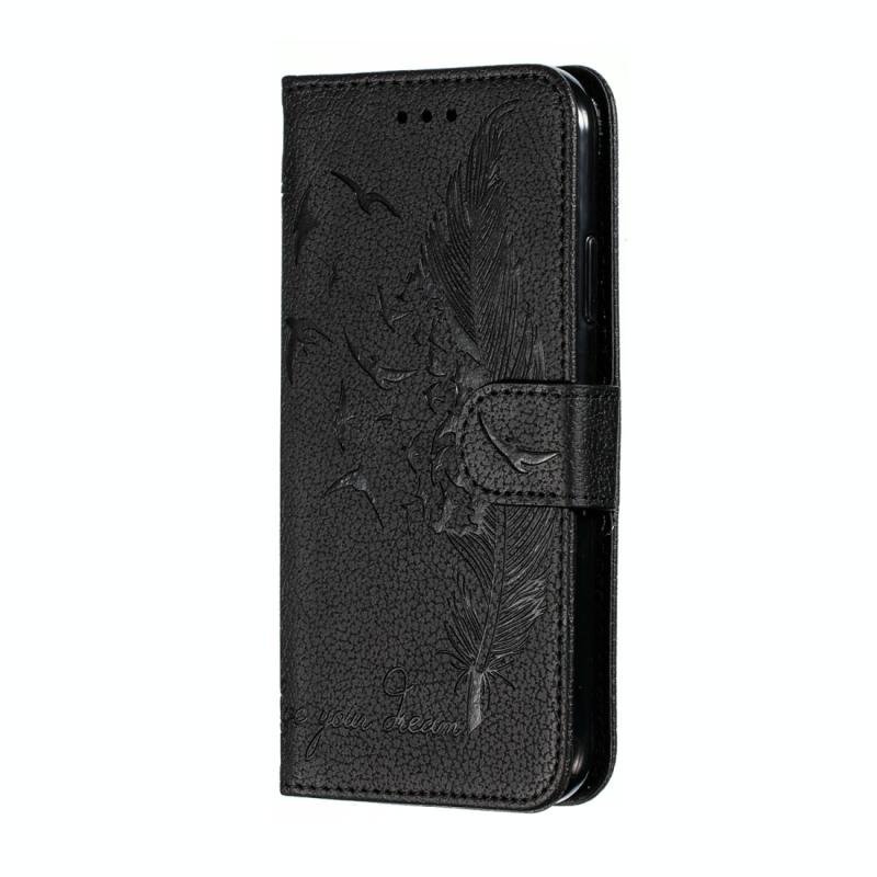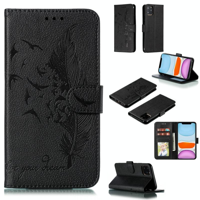 For iPhone 11 Feather Pattern Litchi Texture Horizontal Flip Leather Case with Wallet & Holder & Card Slots (Black)