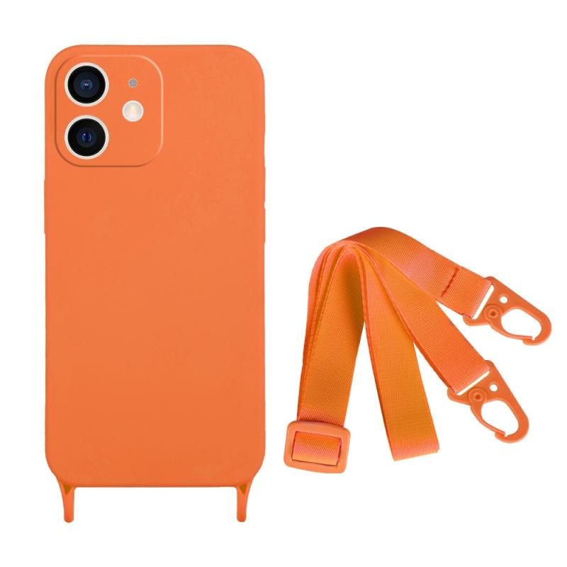 For iPhone 11 Fine Hole Silicone Phone Case with Lanyard(Orange)