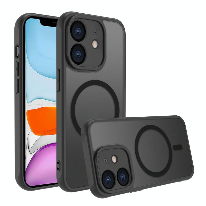 For iPhone 11 Four Corners Shockproof MagSafe PC Hybrid TPU Phone Case(Black)