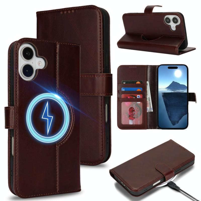 For iPhone 11 Genuine Leather Card Wallet MagSafe Phone Case(Dark Brown)