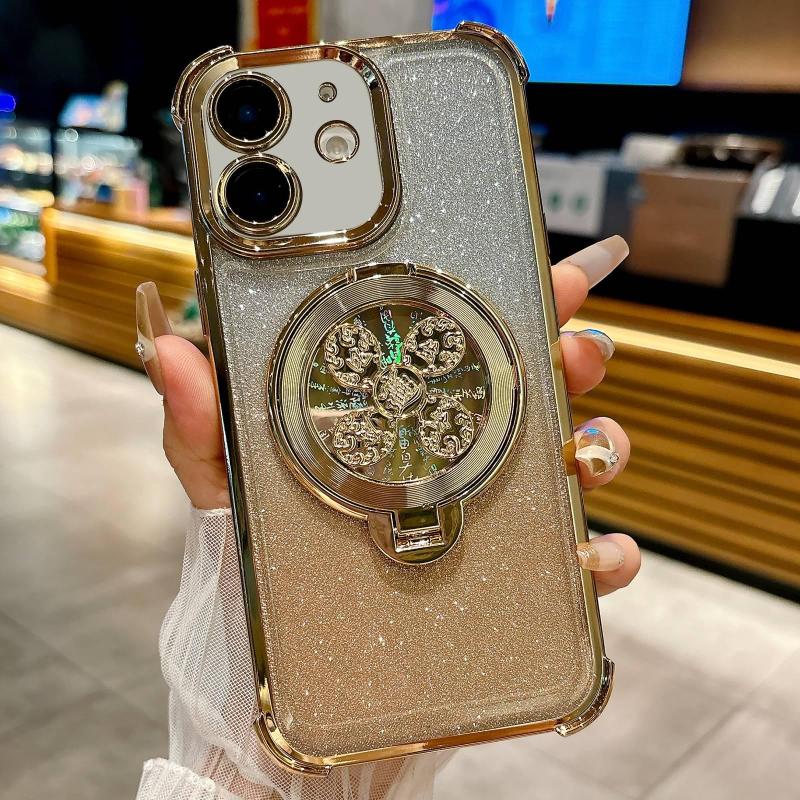 For iPhone 11 Gradient Glitter Spinning Top Holder Phone Case(Gold)