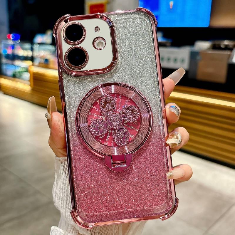 For iPhone 11 Gradient Glitter Spinning Top Holder Phone Case(Pink)
