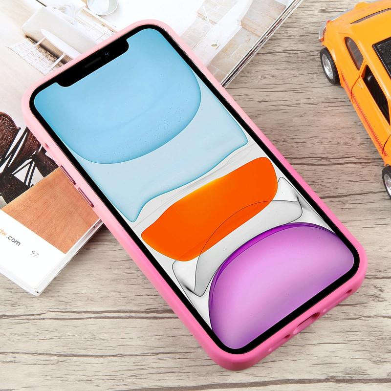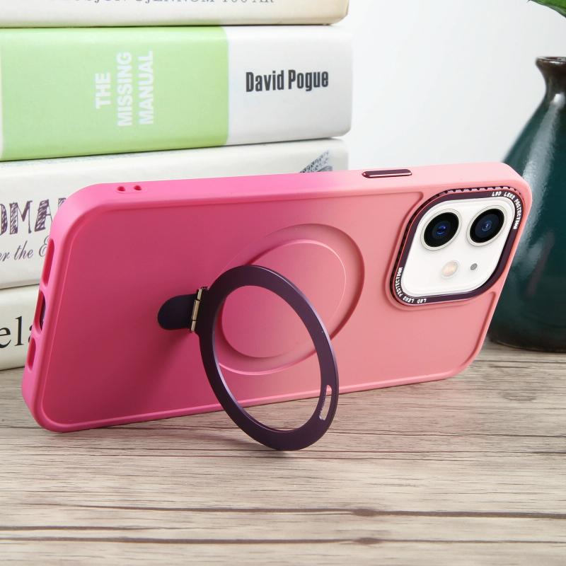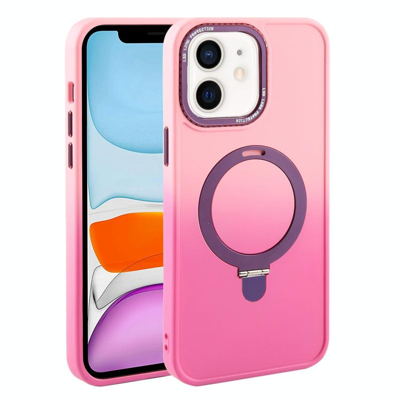 For iPhone 11 Gradient MagSafe Holder Liquid TPU Hybrid PC Phone Case(Pink Red)