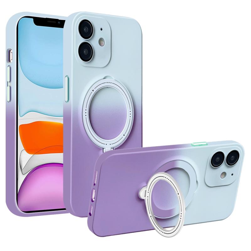 For iPhone 11 Gradient TPU MagSafe Holder Phone Case(Gray Purple)