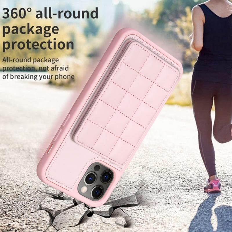 For iPhone 11 Grid Card Slot Holder Phone Case(Pink)