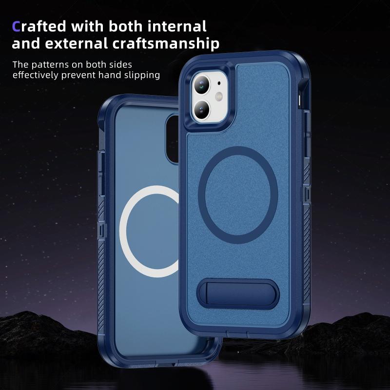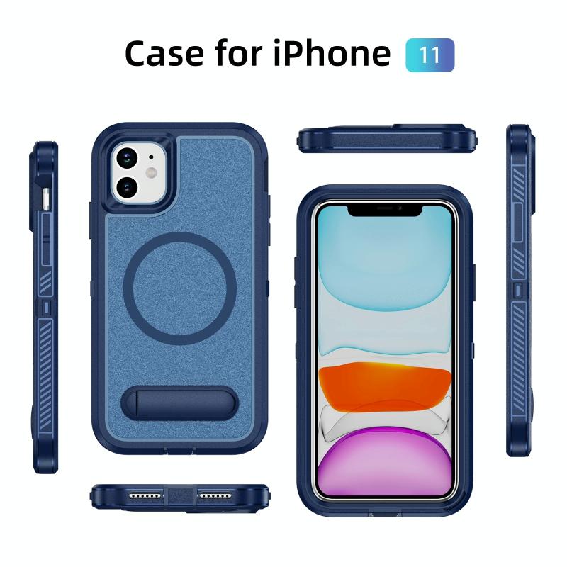 For iPhone 11 Guard MagSafe Holder Matte PC Hybrid TPU Phone Case(Royal Blue)