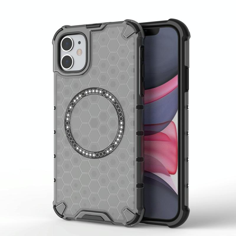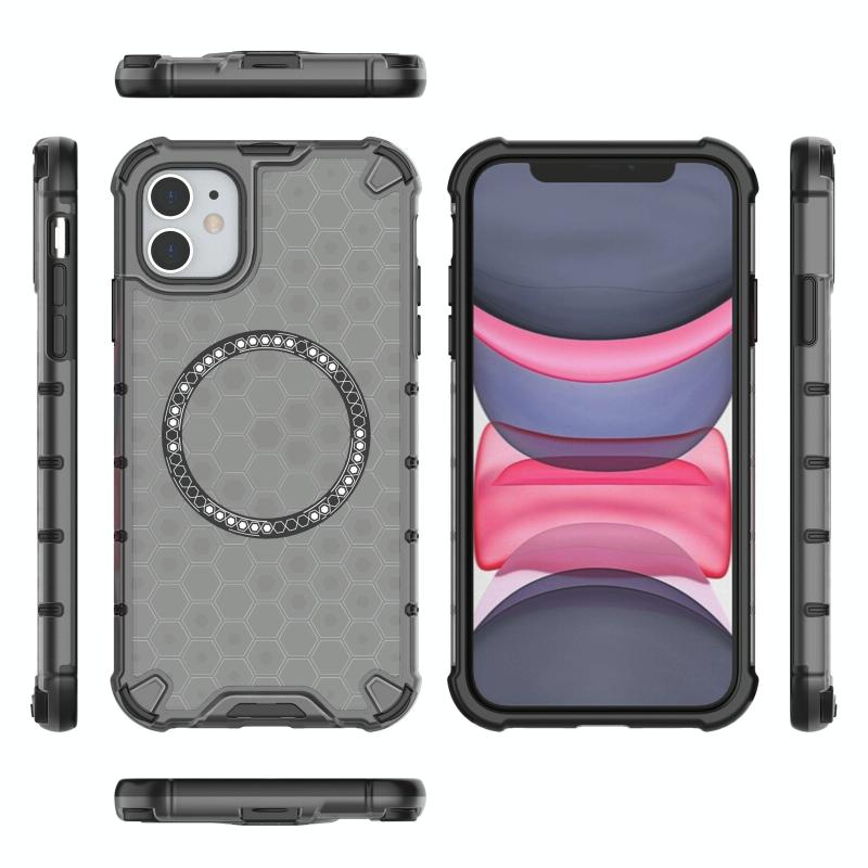 For iPhone 11 Honeycomb Magnetic Ring Shockproof Phone Case(Black)
