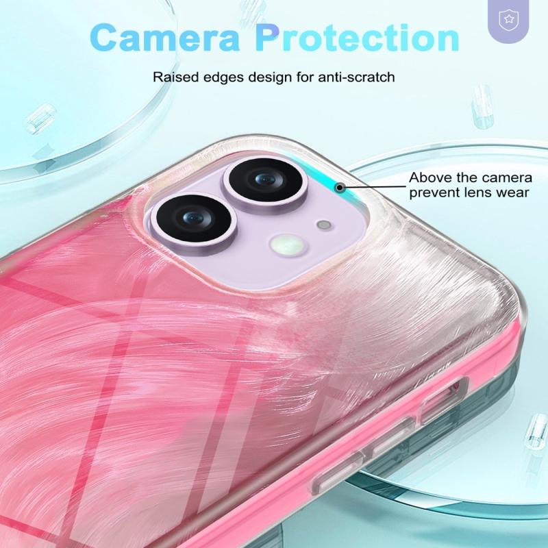For iPhone 11 IMD Gradient Feather PC Hybrid TPU Phone Case(Rose Red)