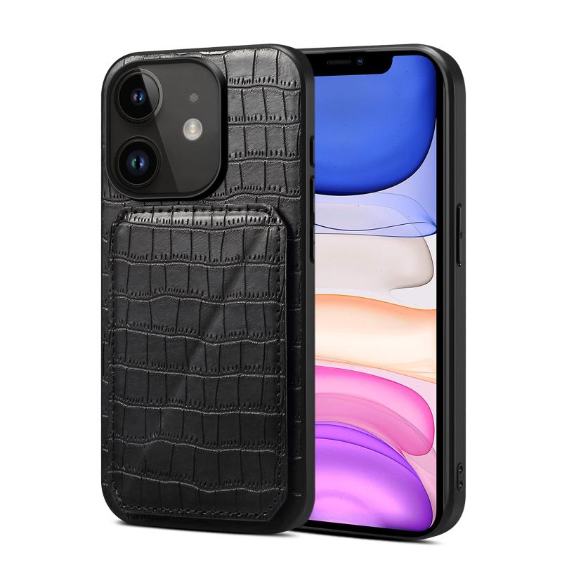 For iPhone 11 Imitation Crocodile Leather Back Phone Case with Holder(Black)