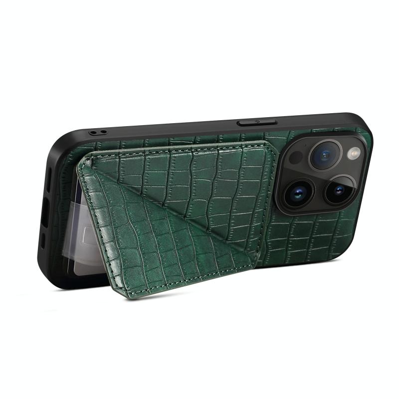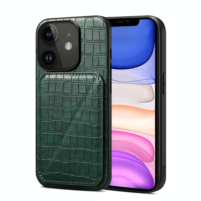 For iPhone 11 Imitation Crocodile Leather Back Phone Case with Holder(Green)