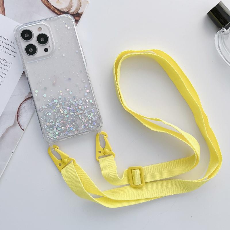 For iPhone 11 Lanyard Glitter Epoxy Clear Phone Case (Yellow)