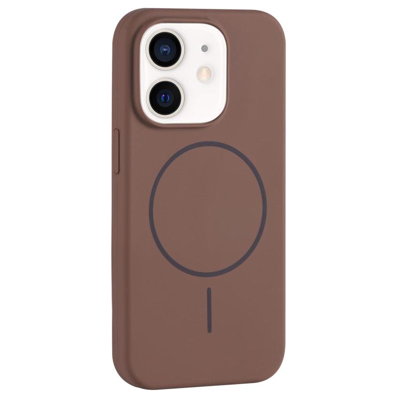 For iPhone 11 Large Hole Camera MagSafe Liquid Silicone Full Coverage Phone Case(Brown)