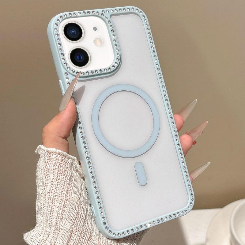 For iPhone 11 Large Lens Hole Rhinestone Frame MagSafe Phone Case(Blue)