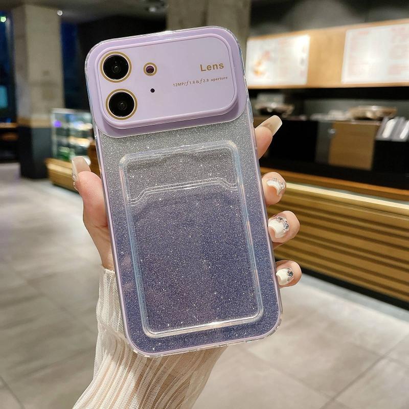 For iPhone 11 Large Window Gradient Glitter Phone Case with Card Slot(Light Purple)