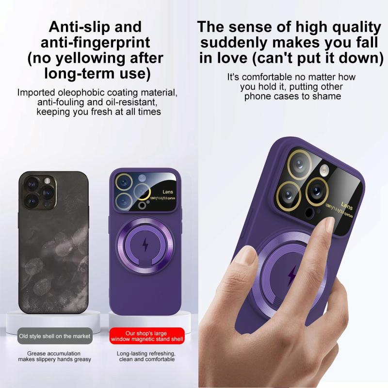 For iPhone 11 Large Window MagSafe Magnetic Holder Phone Case(Black)