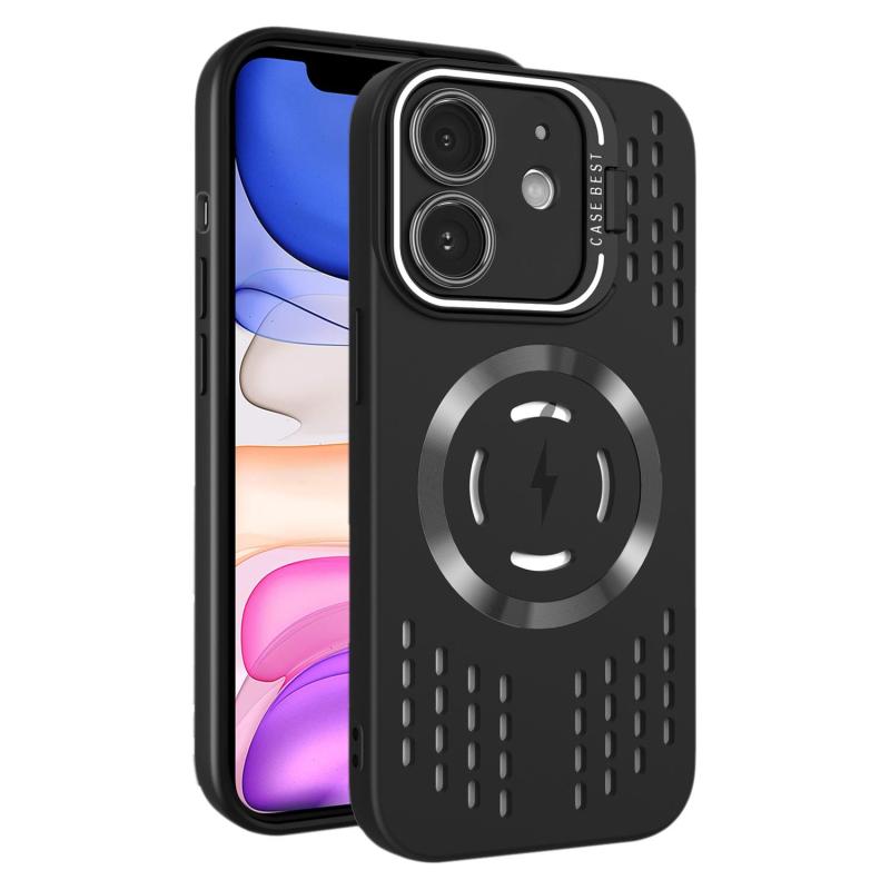 For iPhone 11 Lens Holder MagSafe Cooling Phone Case(Black)