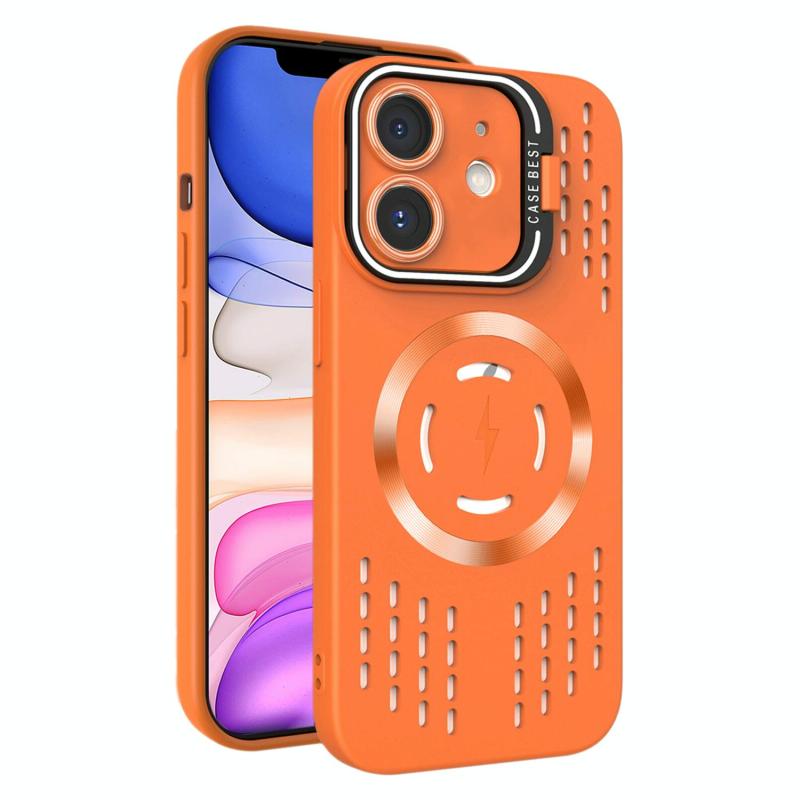 For iPhone 11 Lens Holder MagSafe Cooling Phone Case(Orange)