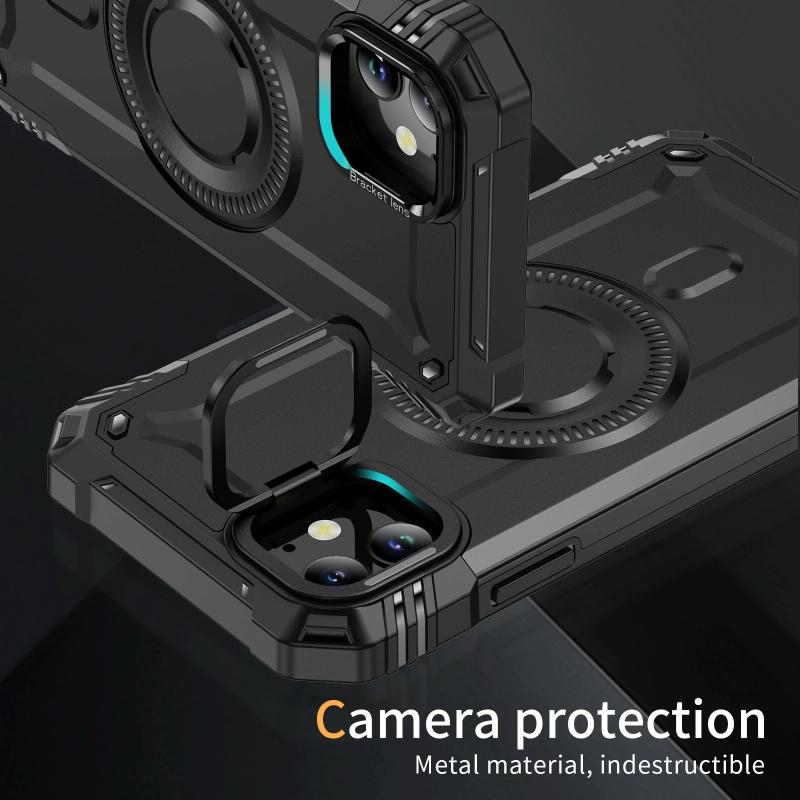 For iPhone 11 Lens Holder MagSafe Phone Case(Black)