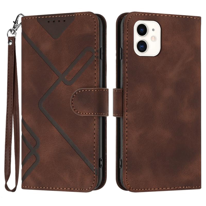 For iPhone 11 Line Pattern Skin Feel Leather Phone Case(Coffee)