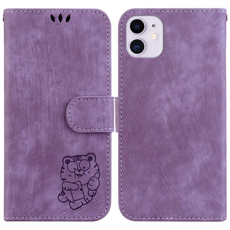 For iPhone 11 Little Tiger Embossed Leather Phone Case(Purple)