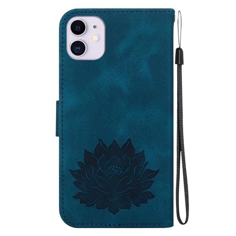 For iPhone 11 Lotus Embossed Leather Phone Case(Dark Blue)
