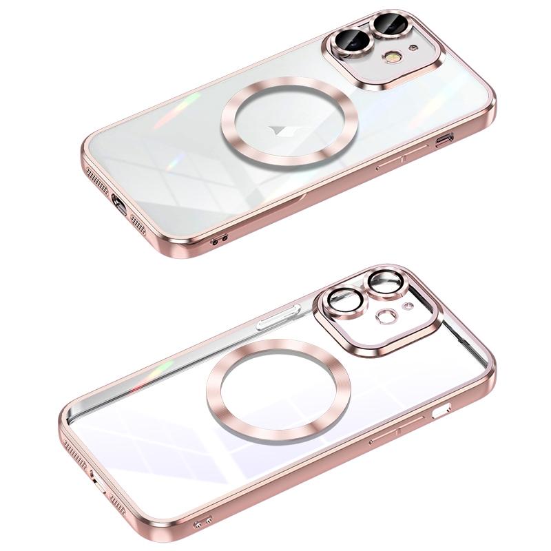 For iPhone 11 MagSafe CD Texture Metal Lens Frame Full Coverage Phone Case(Pink)