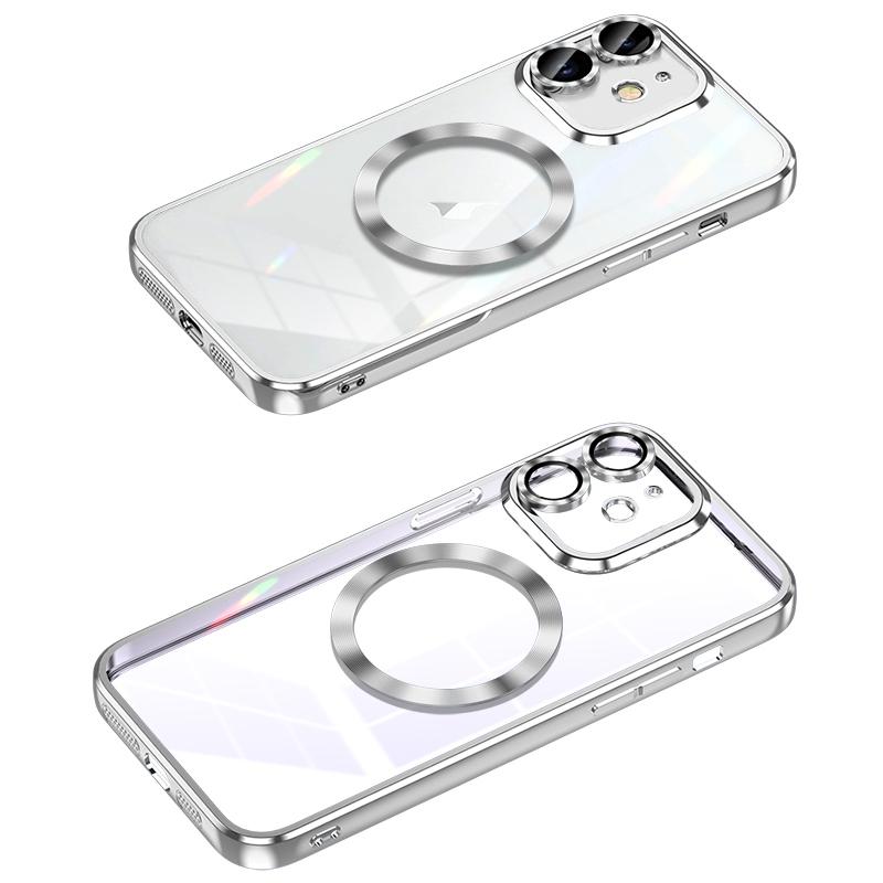 For iPhone 11 MagSafe CD Texture Metal Lens Frame Full Coverage Phone Case(Silver)