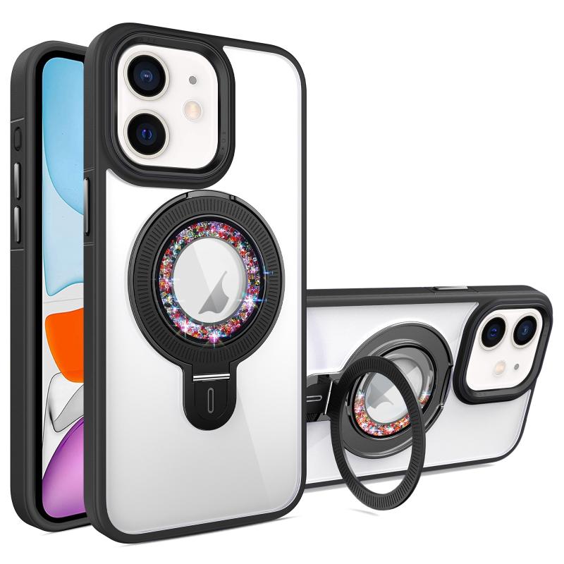 For iPhone 11 MagSafe Flip Holder Full Coverage TPU+PC Clear Phone Case(Black)