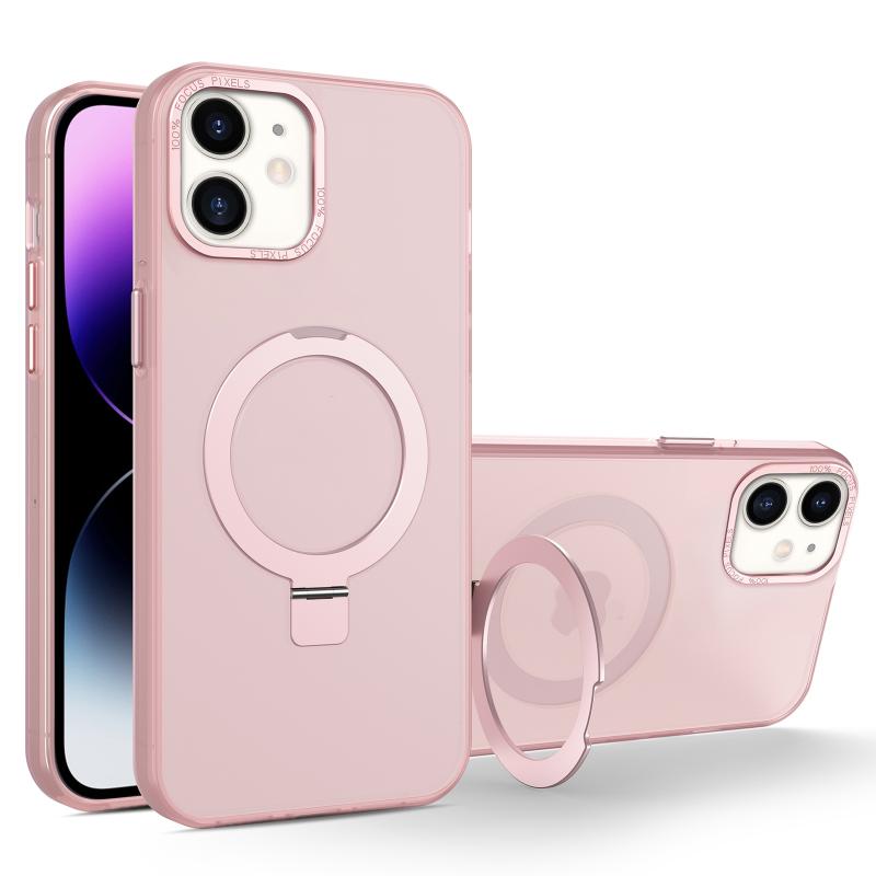 For iPhone 11 MagSafe Metal Holder Frosted Translucent Phone Case(Pink)