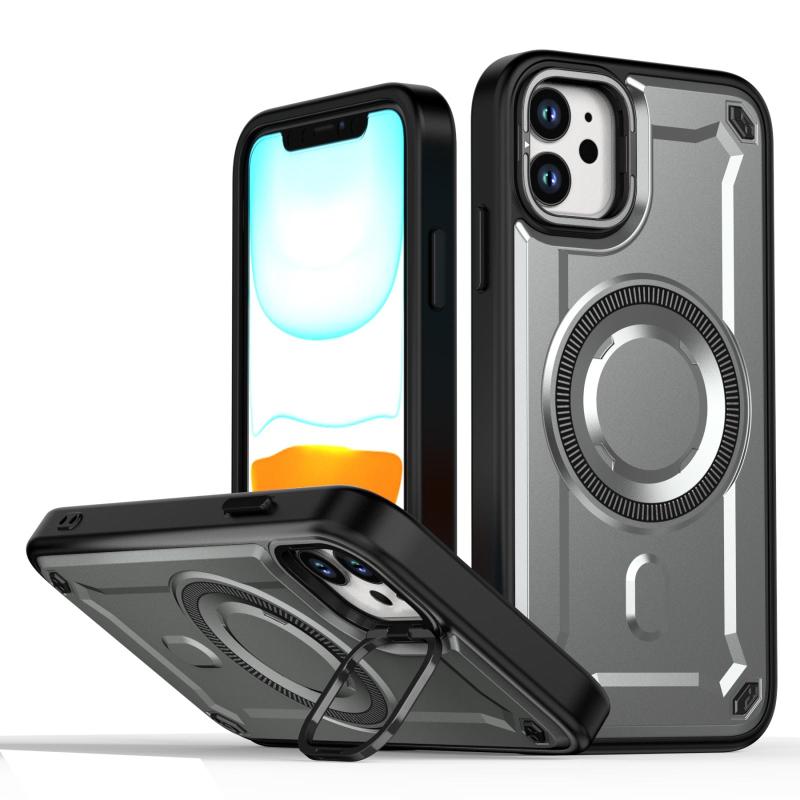 For iPhone 11 MagSafe PC Phone Case with Lens Holder(Grey)