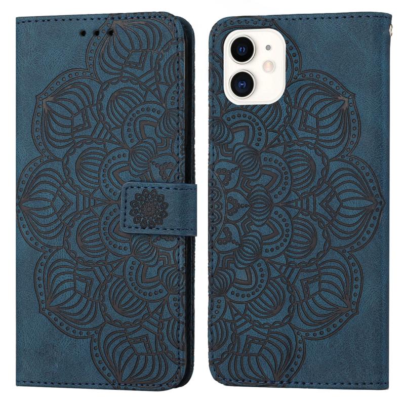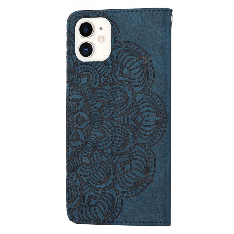 For iPhone 11 Mandala Embossed Flip Leather Phone Case (Blue)