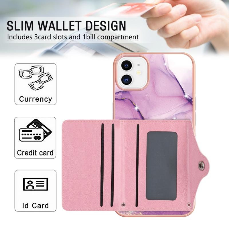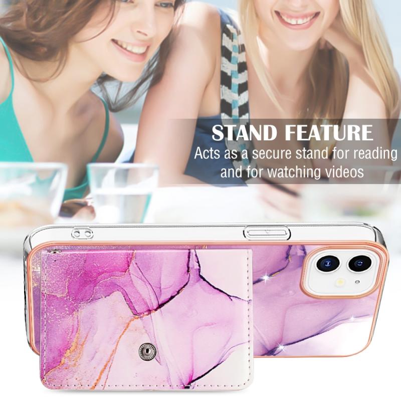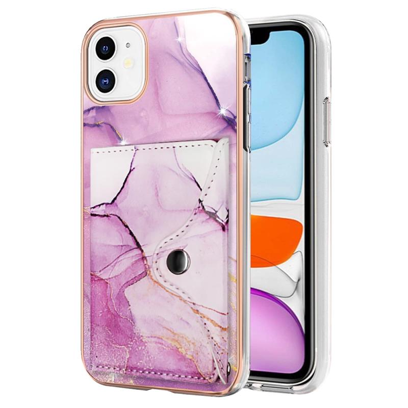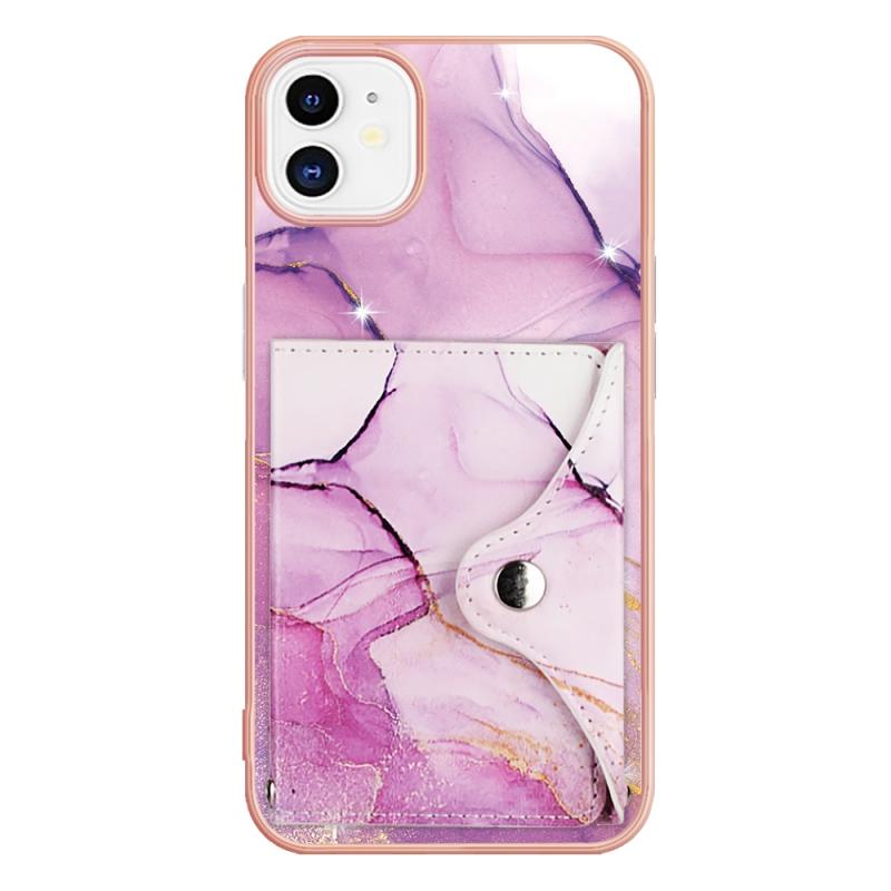 For iPhone 11 Marble Pattern IMD Card Slot Phone Case(Pink Purple Gold)
