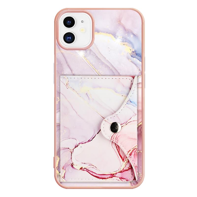 For iPhone 11 Marble Pattern IMD Card Slot Phone Case(Rose Gold)