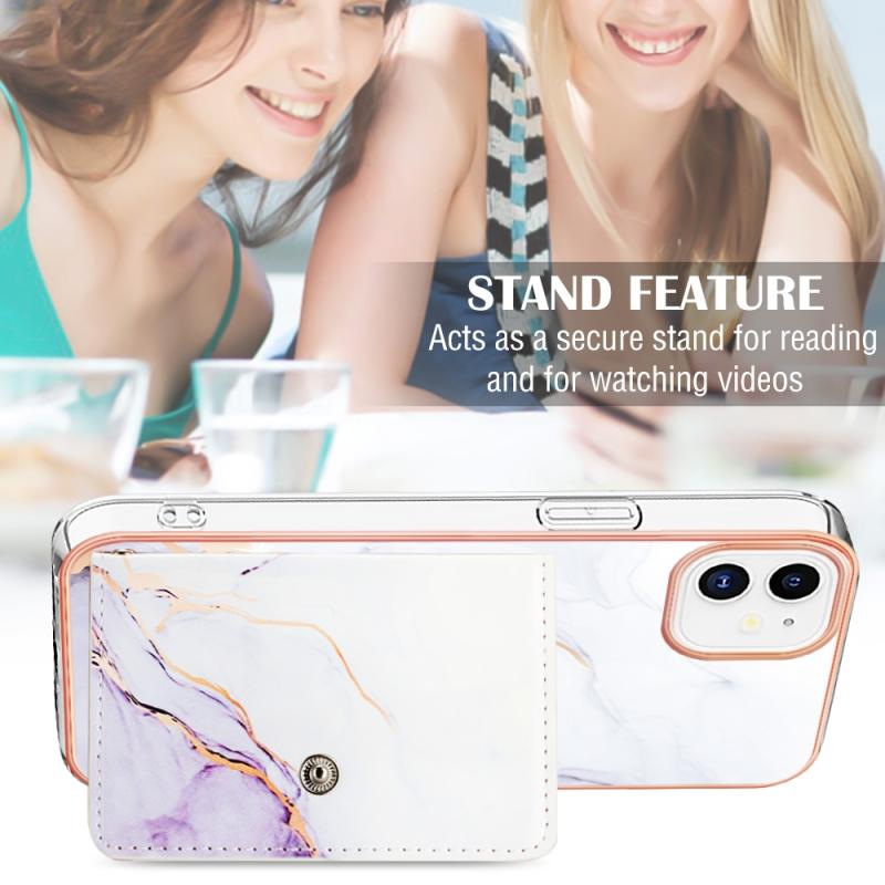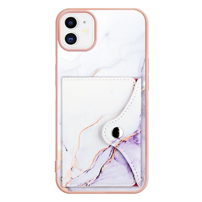 For iPhone 11 Marble Pattern IMD Card Slot Phone Case(White Purple)