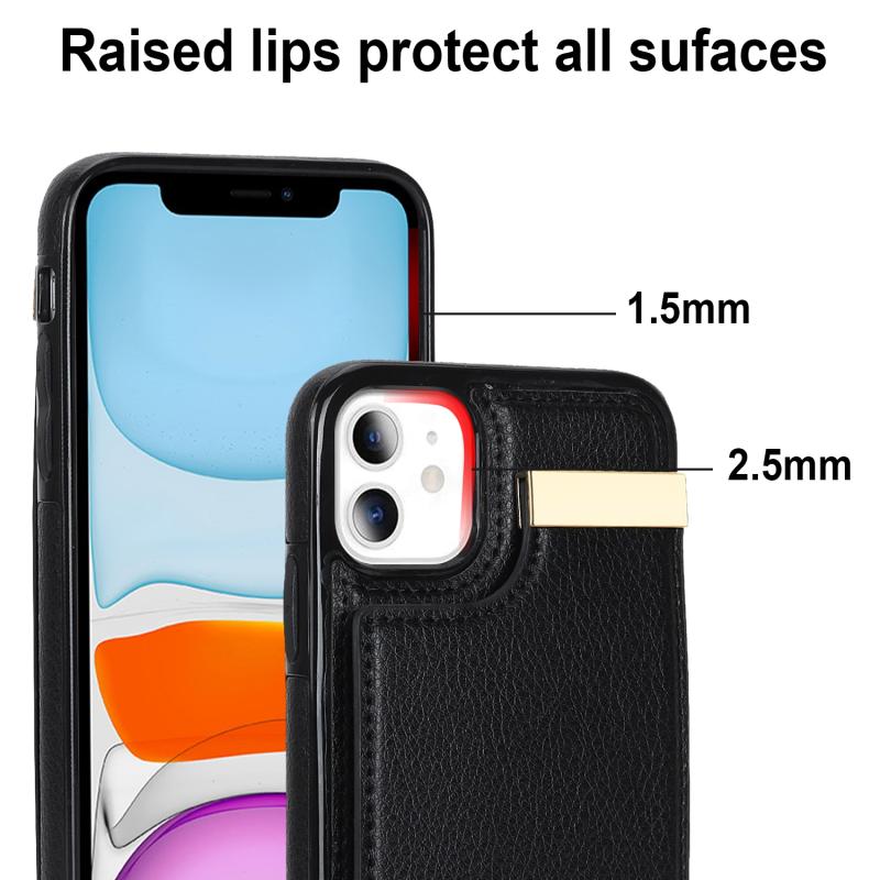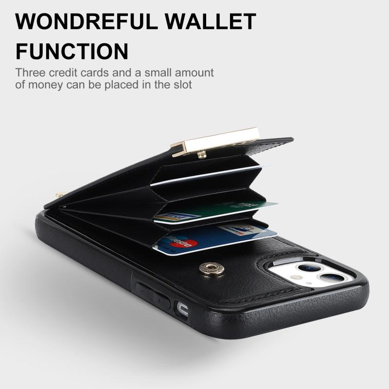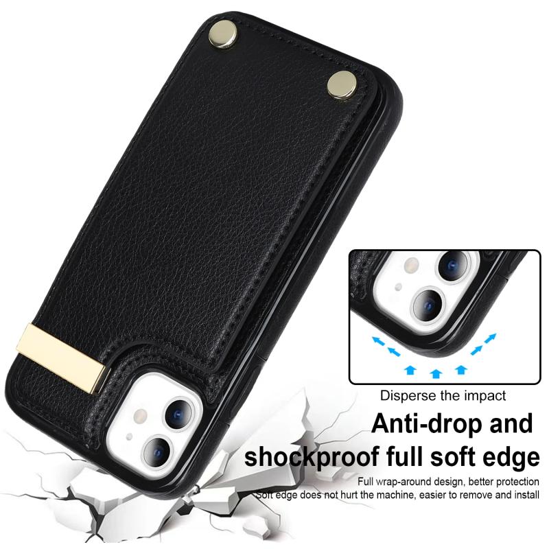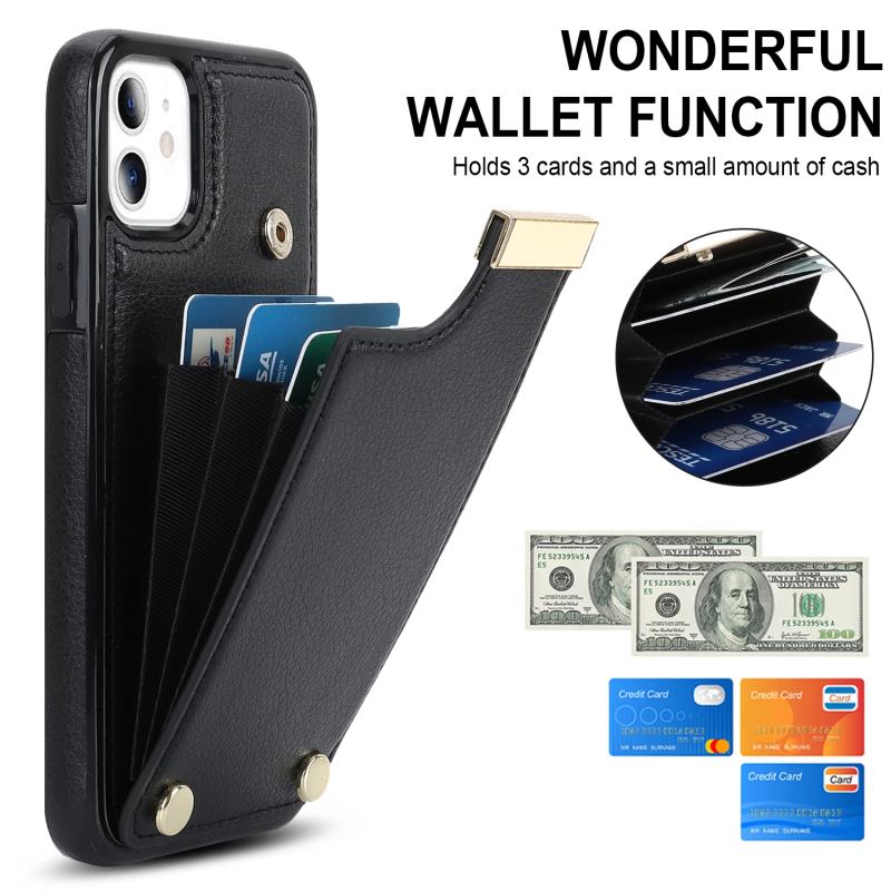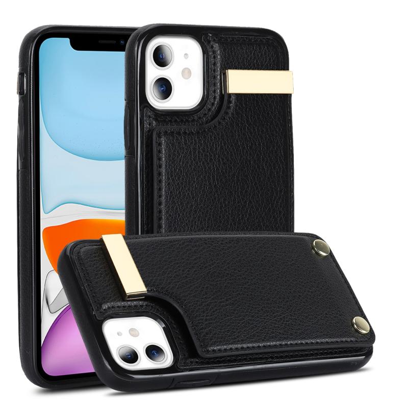 For iPhone 11 Metal Buckle Card Slots Phone Case(Black)