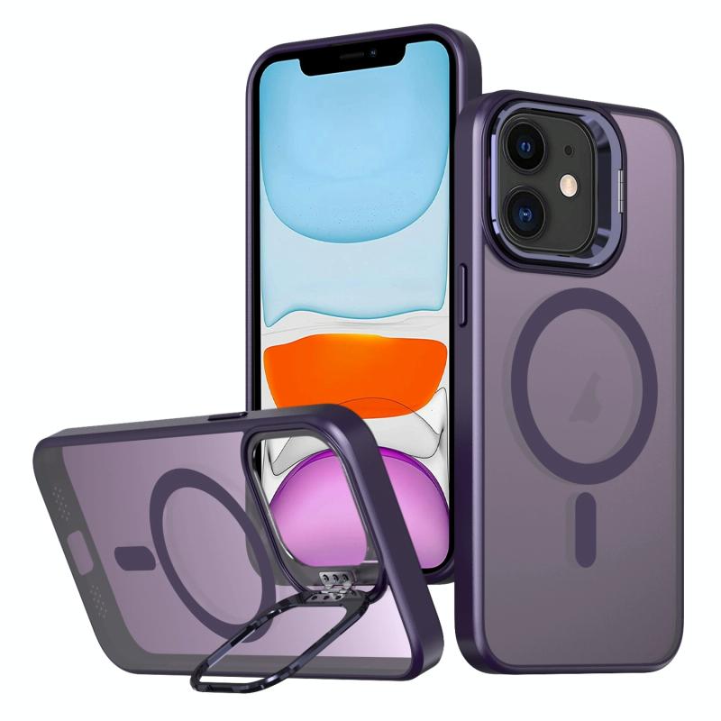 For iPhone 11 Metal Invisible Camera Holder MagSafe Magnetic Phone Case(Purple)
