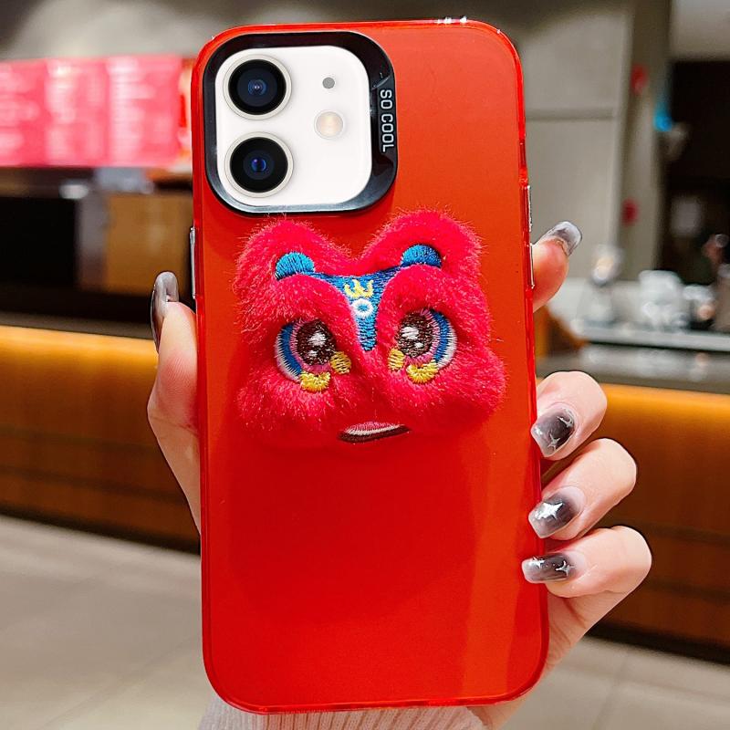 For iPhone 11 New Year Lion Dance Plush Doll Phone Case(Red Back Red Lion)