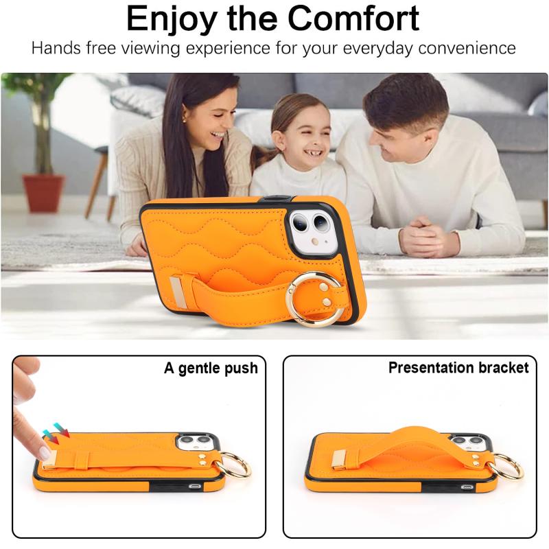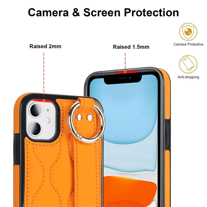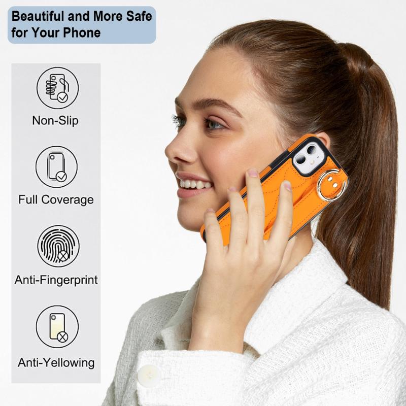 For iPhone 11 Non-slip Full Coverage Ring PU Phone Case with Wristband(Orange)